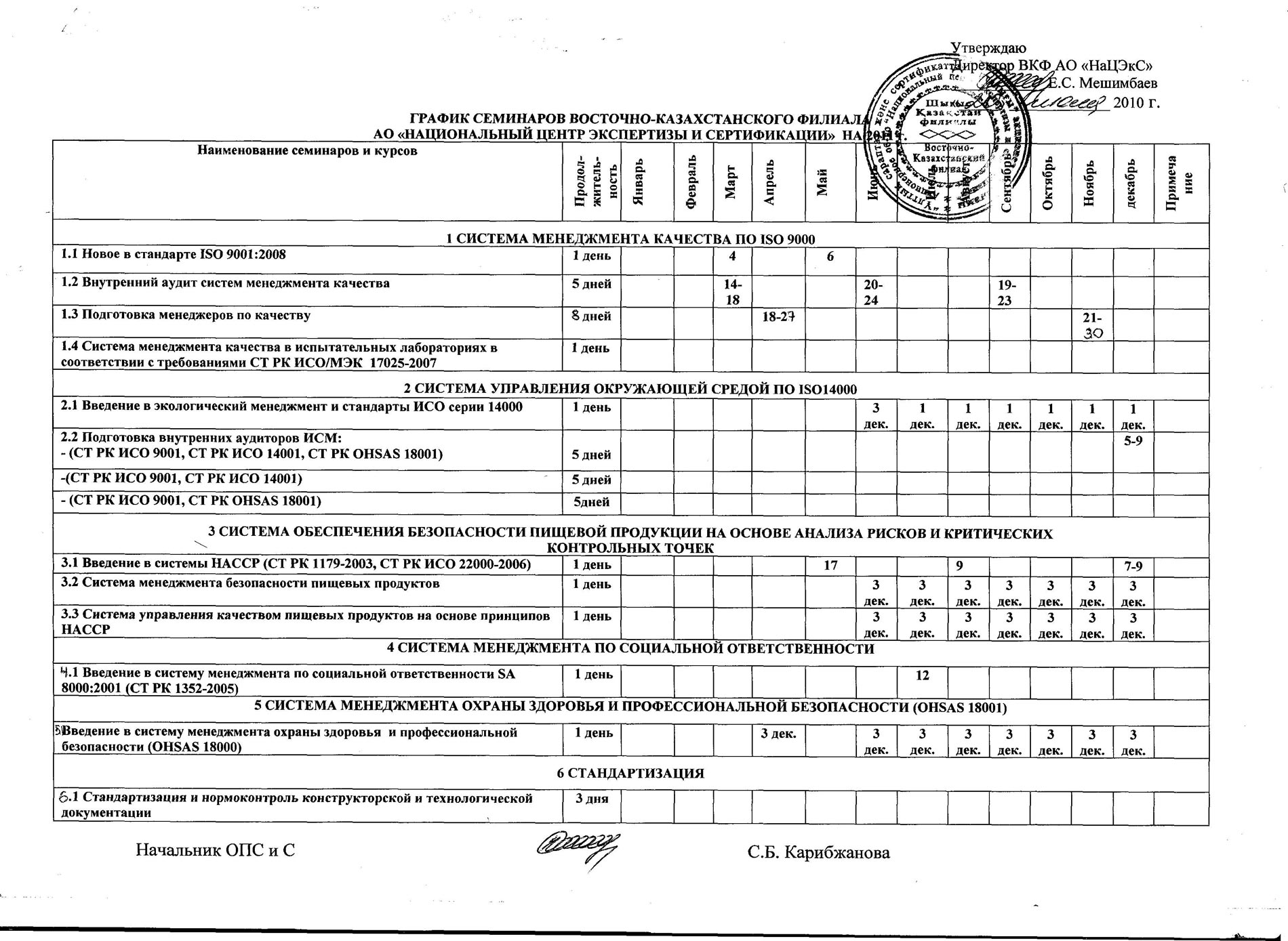 ВКФ АО «Национальный центр экспертизы и сертификации» приглашает принять участие в семинаре с 22 по 25 февраля 2011 г «Внутренний аудит системы менеджмента в соответствии с требованиями СТ РК ИСО/МЭК 17025-2007».